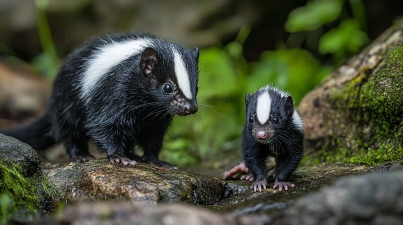 En revanche, la femelle reste seule pour élever sa progéniture. Il est important de noter que la moufette peut s’accoupler avec plusieurs mâles, assurant ainsi une plus grande diversité génétique parmi ses petits.